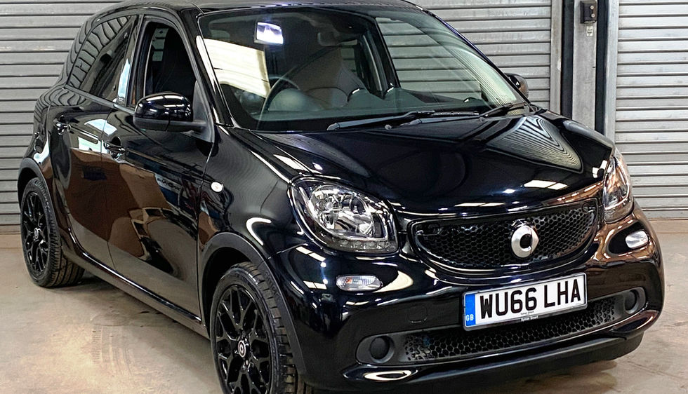 2016 66 reg SMART FORFOUR BLACK EDITION AUTO 1.0 TURBO, Only 25,000 miles Genuine! with Smart Service History, Exceptional Example, Stunning Smart Black with Black Leather, Heated Seats, PANORAMIC GLASS SUNROOF + Climate Control Air-conditioning, SATNAV & Media Interface, Bluetooth, Cruise Control, Parking Sensors, Power Steering, 16" Alloy Wheels, Trip Computer, Privacy Glass, Electric Mirrors, Electric windows, 2x Keys Remote locking, PAS, ABS, ESP, Traction control, Very Responsive & Economical 1.0 Turbo 90 Bhp Petrol Auto, £20 Road Tax, ULEZ Compliant